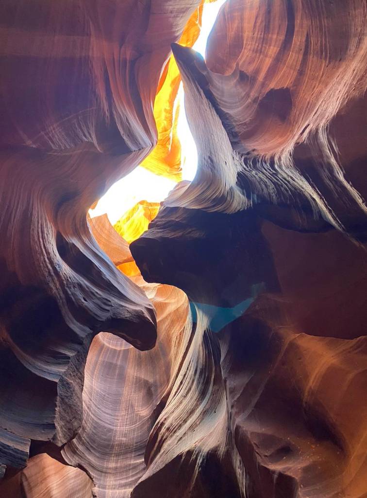 Nous ne sommes pas venus à Page par hasard. Il y avait de multiples raisons à ce stop au milieu du désert, limite entre l’Utah et l’Arizona. Si nous avons eu la bonne surprise de voir le Grand Canyon par le nord (cf article précédent), nous avons été ébahi devant la beauté d’un Canyon beaucoup plus petit. Antelope Canyon se passerait bien de mes mots, tant les images sont incroyables.