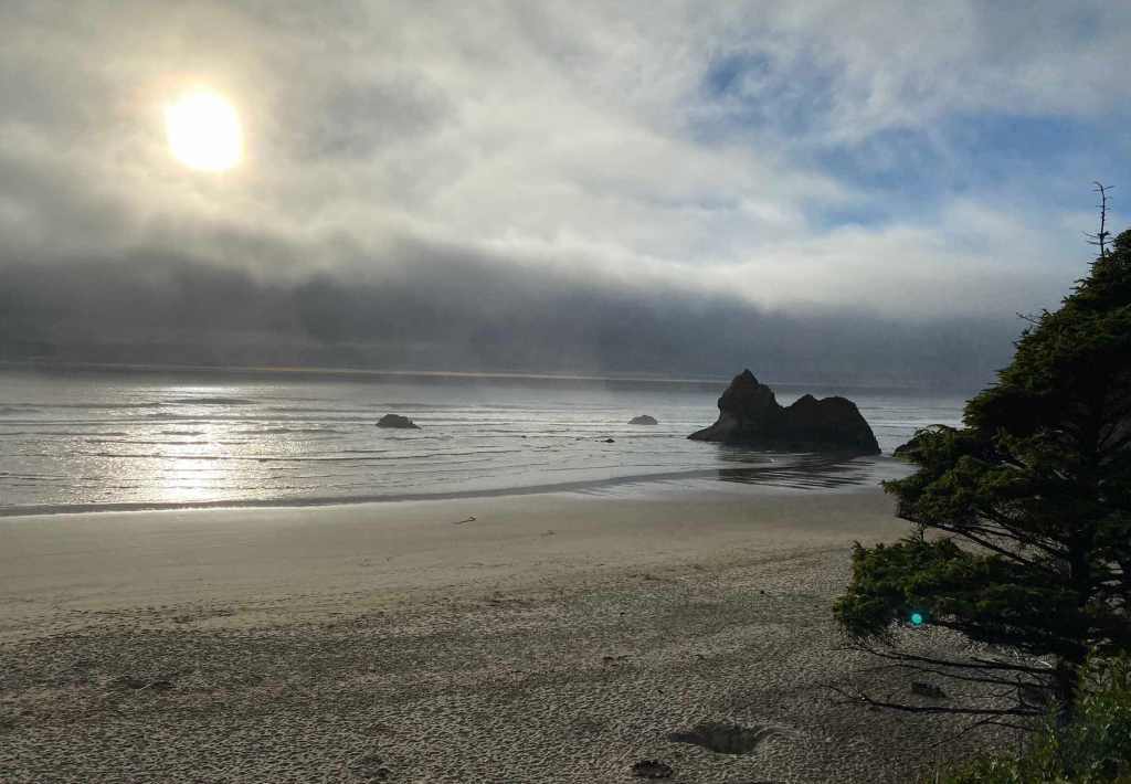 Après Seattle, cette douce anomalie dans les villes américaines, nous avions donc prévu de découvrir l’Orégon. Un état peu connu ici en Europe, qui réserve bien des surprises et des sites d’une beauté intrigante. Et, comme nous avions hâte de revoir l’océan pacifique, il nous est apparu vital de commencer la descente vers le Sud et la Californie, par la côte. La fraicheur est au rendez-vous. L’air iodé aussi. Il nous fouette le visage comme une brise bretonne. C’est bon après déjà deux semaines dans la chaleur d’un été particulièrement sec aux USA. Le brouillard nous accueille à l’approche des plages, au sortir d’une route qui traverse des étendues enfin vertes.