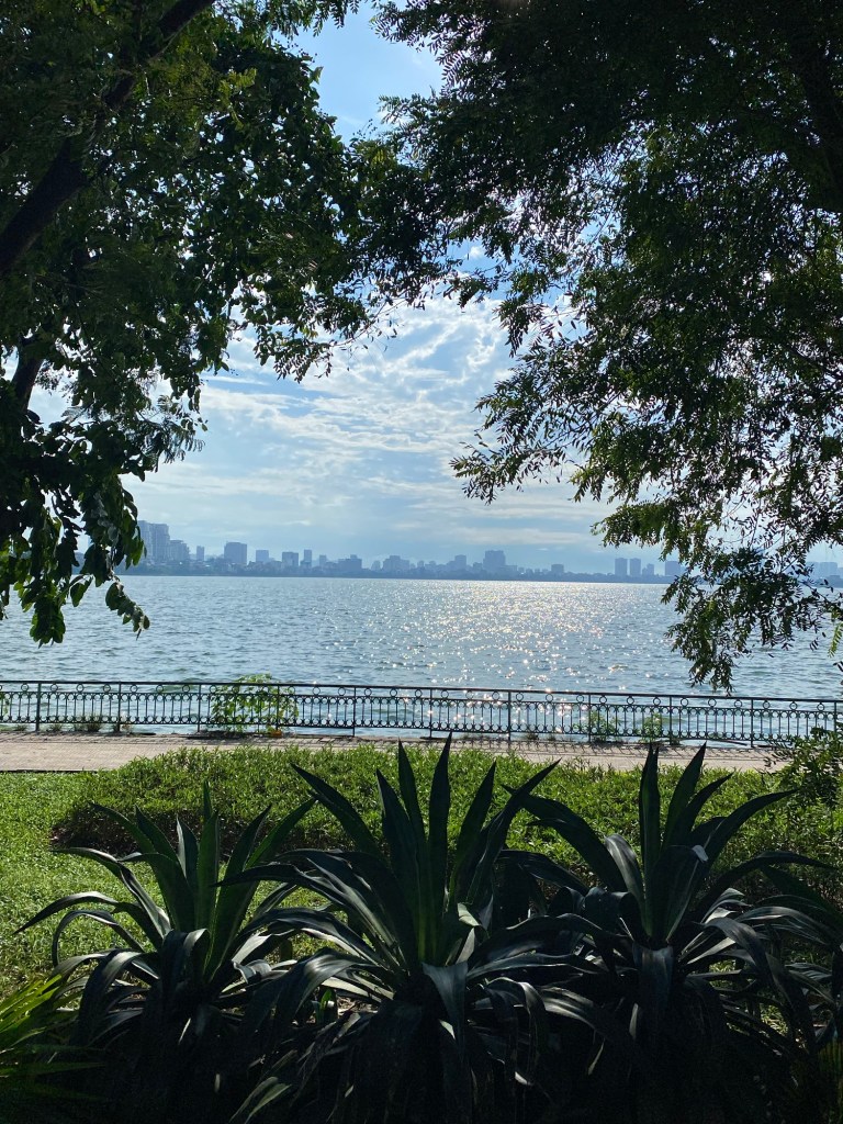 Un hyper centre d’une ville entourée d’eau dont la fameuse rivière rouge descendant de Chine et de lacs dont celui qualifié de petit, qui fournit un lieu de promenade ombragé. Dans cette ville copieusement arrosée par les cieux, l’ombre est indispensable dès que le soleil augmente la température au-delà des 30 degrés. D’ailleurs les larges avenues qui permettent une circulation hors du centre sont elles aussi pourvues d’arbres protecteurs.