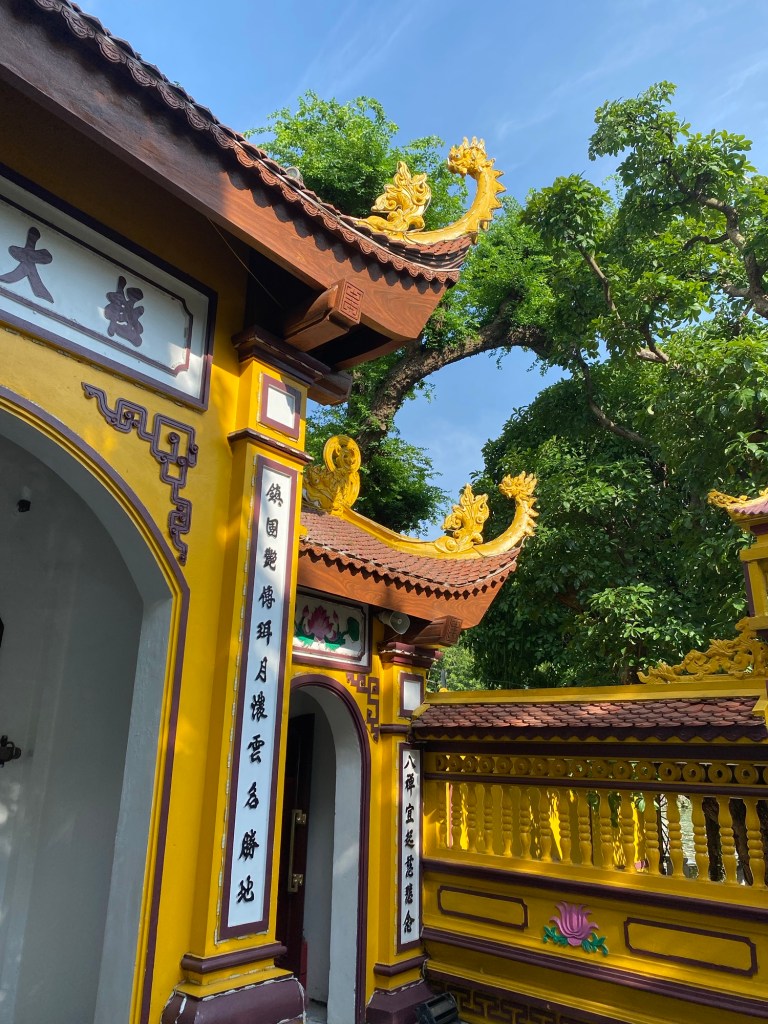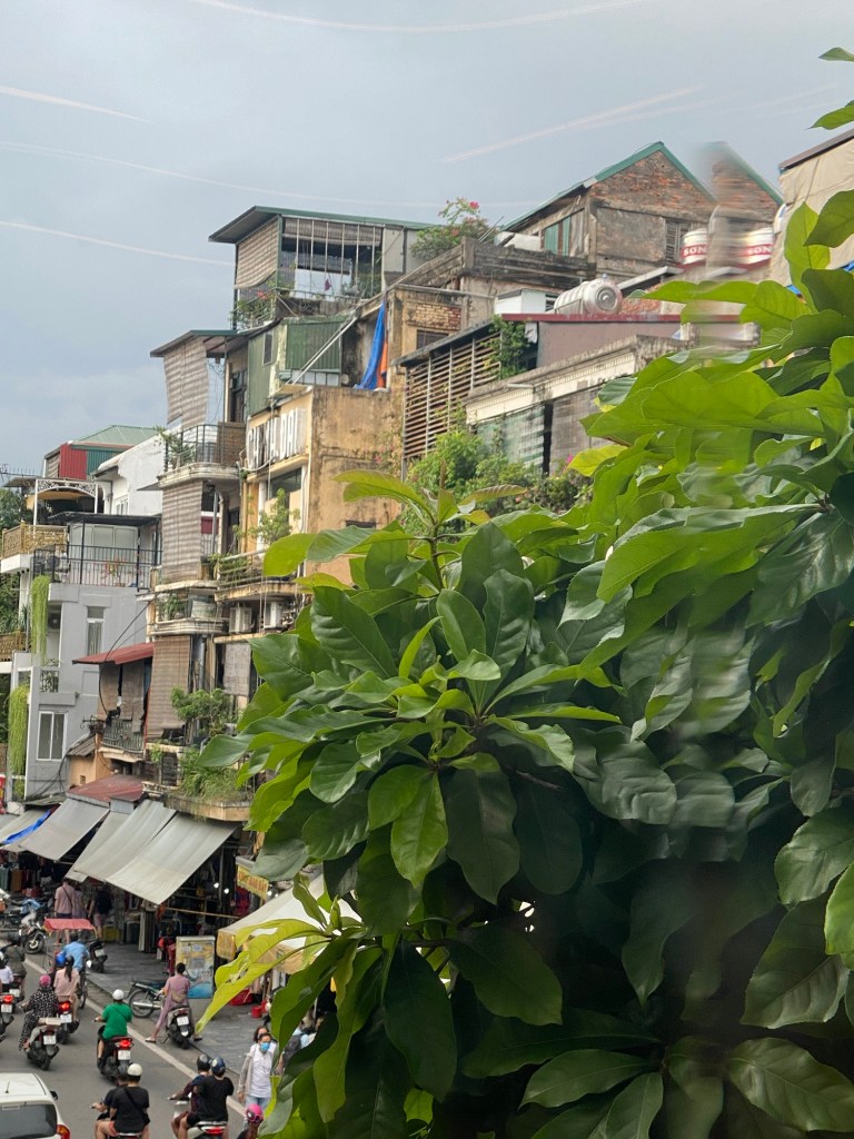 La route coupe le lac et permet de rejoindre l’autre bord tout en nous promettant une halte à la pagode protégeant les habitants. En poursuivant le tour vers la petite partie du lac on est sur un parcours moins fréquenté avec quelques mini terrasses et aussi d’anciens wagons de tram réaménagés. Mais c’est aussi un chemin un peu long avant de retrouver l’hyper centre et son vacarme ambiant. On passe devant le marché et on se retrouve dans des rues vantant les produits de marques made in Vietnam 🇻🇳. Pas cher mais pas forcément la meilleure qualité bien que théoriquement sortis des mêmes usines…