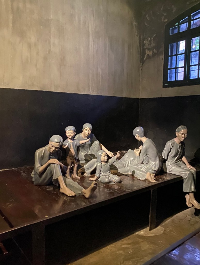 Et puis c’est le moment de passer par la case prison sans toucher 20 000 ! Et pour entrer dans la maison centrale Hoa Lo par la grande porte, il faut payer 40 000 dôngs. L’ancienne prison se visite pour la partie conservée et donne une idée peu réjouissante de la main de fer posée par les colons français sur les rebelles vietnamiens. Des conditions de survie inhumaines et inimaginables aujourd’hui dans ce lieu qui servit de creuset pour les révolutionnaires, hommes et femmes. C’est assez impressionnant, même si la narration employée par le gouvernement sent bon la propagande, nous nous sentons bizarrement coupables face à l’histoire. En fin de visite on apprend que des pilotes américains capturés ont été également détenus ici par l’armée Nord-vietnamienne, et eux avaient semble-t-il le droit de jouer au foot ou au volley ! Ils ont ainsi été libérés en bonne santé, prouvant la supériorité morale des locaux. Bref…